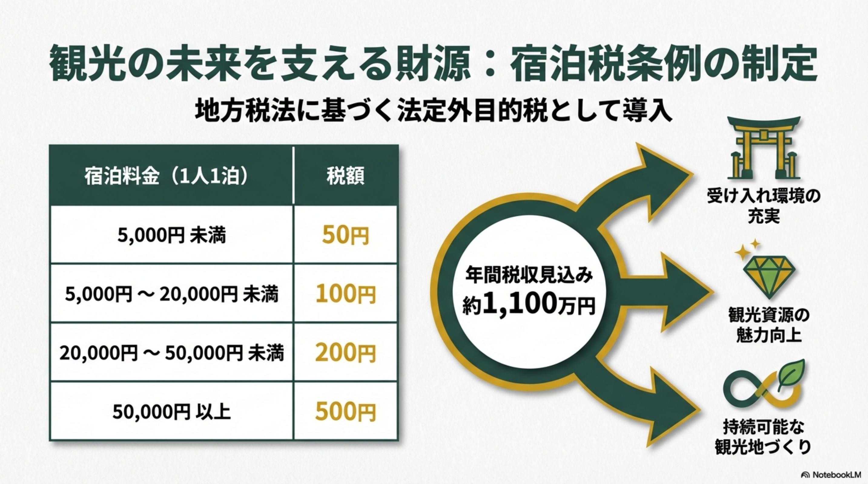 - 宿泊税の税率設定(50〜500円)と観光財源としての使途をめぐる議論